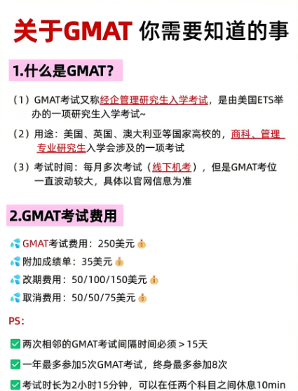 GMAT 全称为 Graduate Management Admission Test,中文全称是管理学研究生入学考试,适用于测试商科类学院申请学生能力的标准化考试。在申请学校时,很多商学院都会要求学生提供 GMAT 成绩。比如:美国 Top30 的学校一般都要求 GMAT 在 700 或 720+ 才更有竞争力;申请英国 G5 院校,GMAT 达到 720+ 也更有希望。