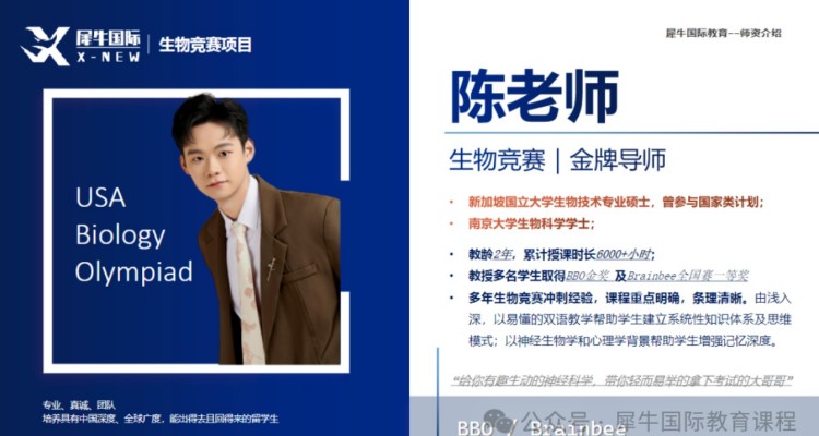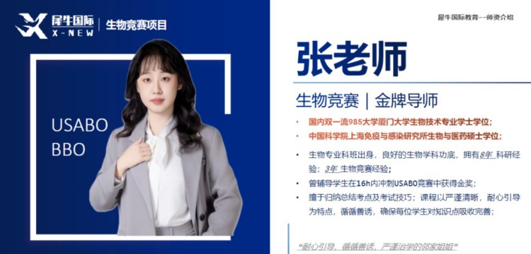 教龄5年,累计授课时间3800+小时;教授学生30+获得BBO与USABO全球金奖