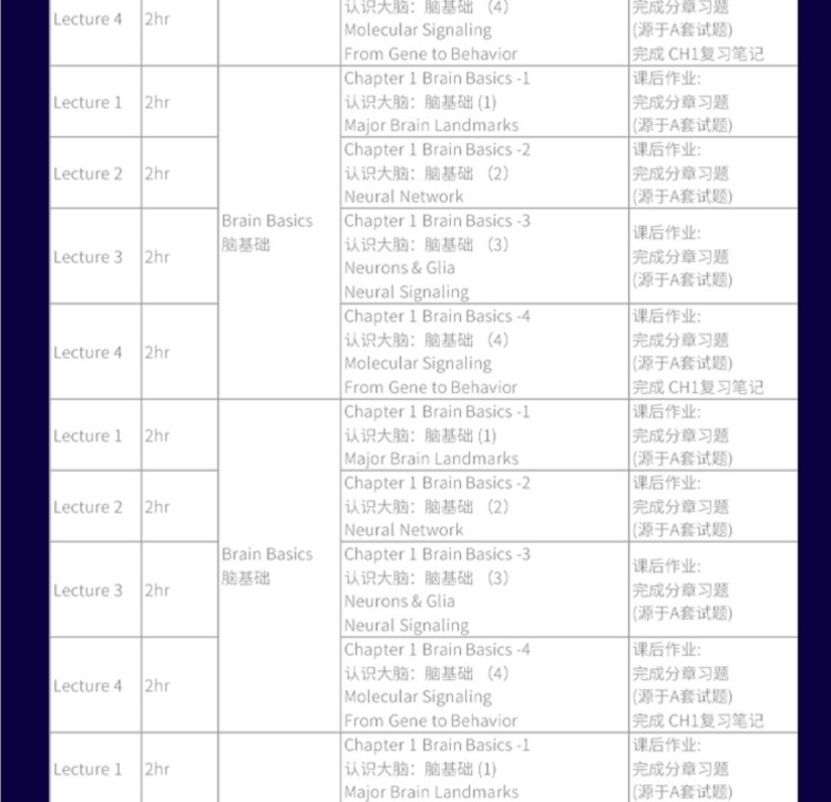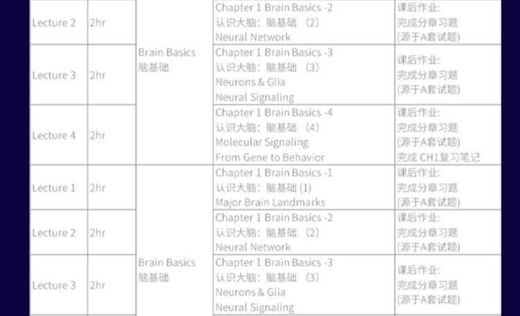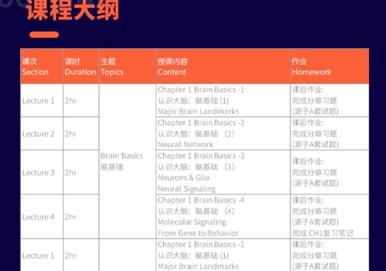 Brain Bee竞赛辅导培训班课程大纲: