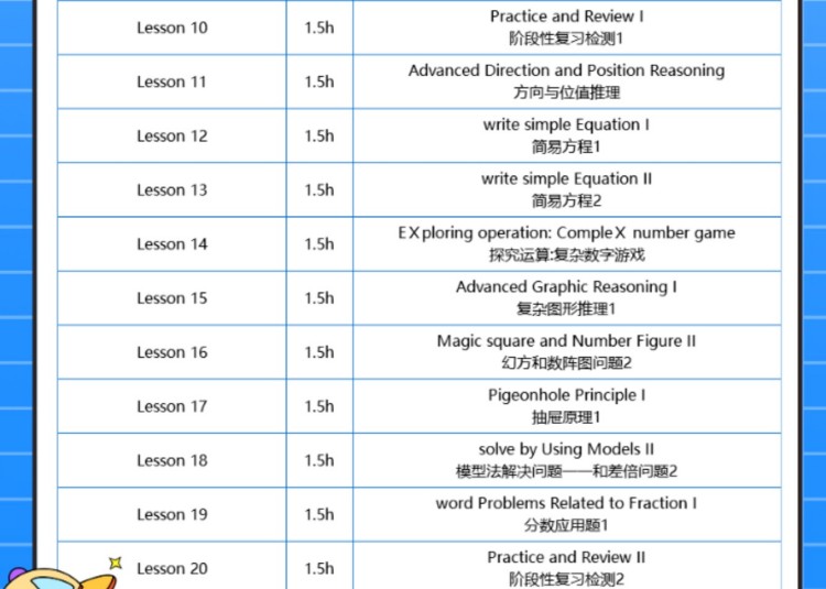 备战竞赛的同时包含小升初课内知识点:抽屉原理、方程等。助力竞赛课内双丰收;
