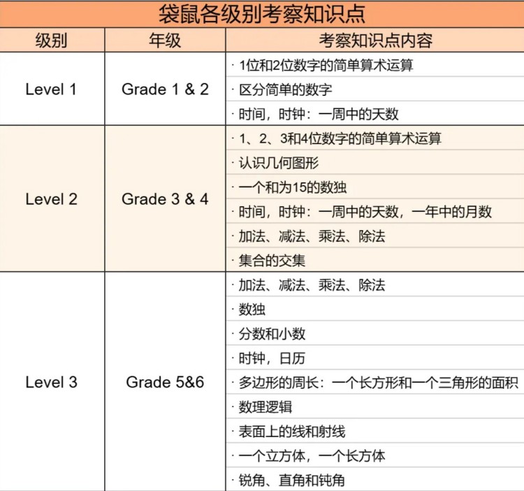 冲刺袋鼠L2考试;袋鼠L2前测能够达到15分以上;具备基础的计算以及阅读能力;1~4年级,但还不够学习PREAMC8。