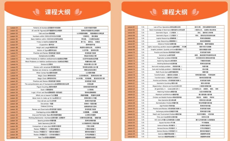 冲刺袋鼠L1考试;袋鼠L1前测能够达到8分以上;大班~2年级,刚刚接触数学的初学者;未接触过数学竞赛,但有兴趣尝试挑战。