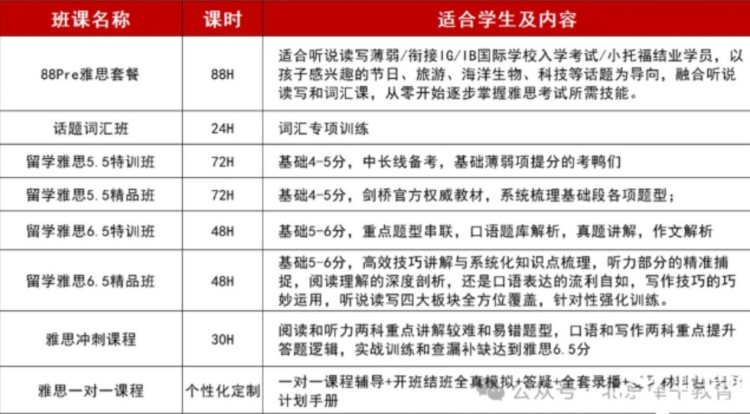 3.多样化课程:多个班型,适合不同水平的雅思备考学生。