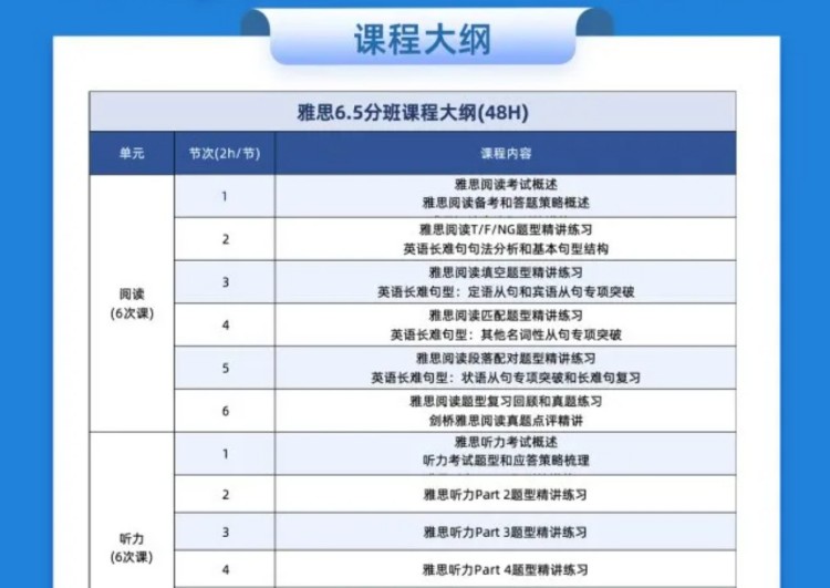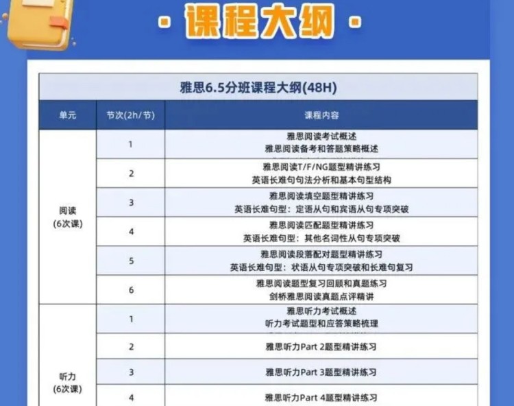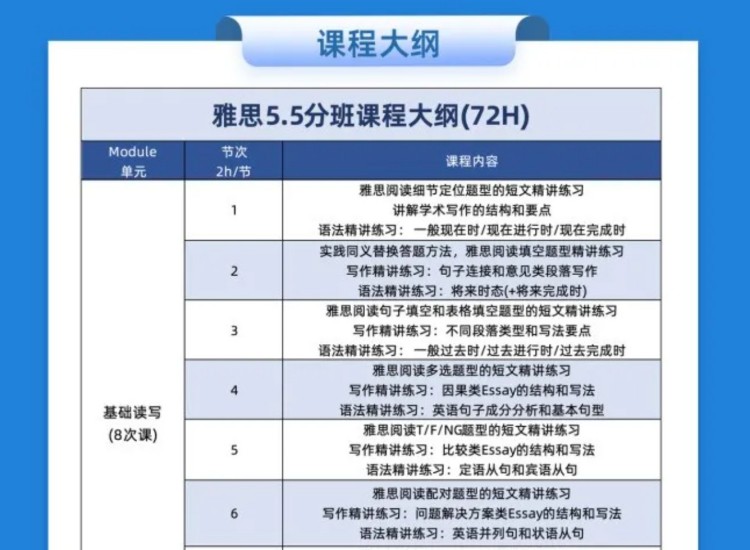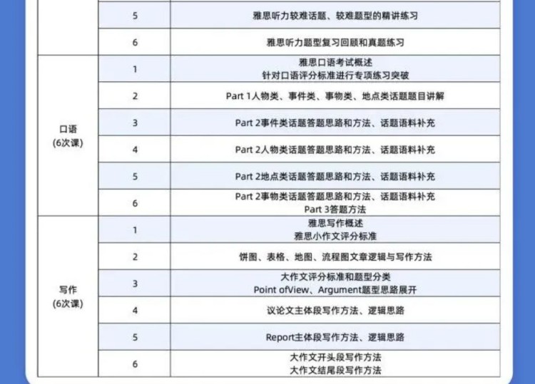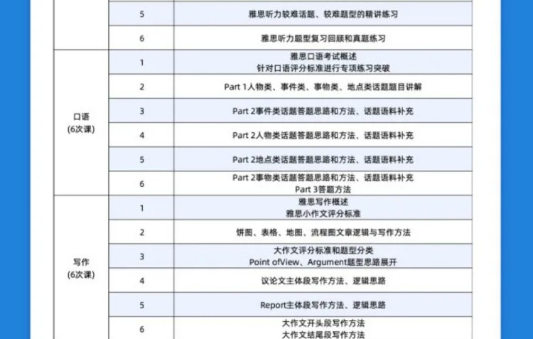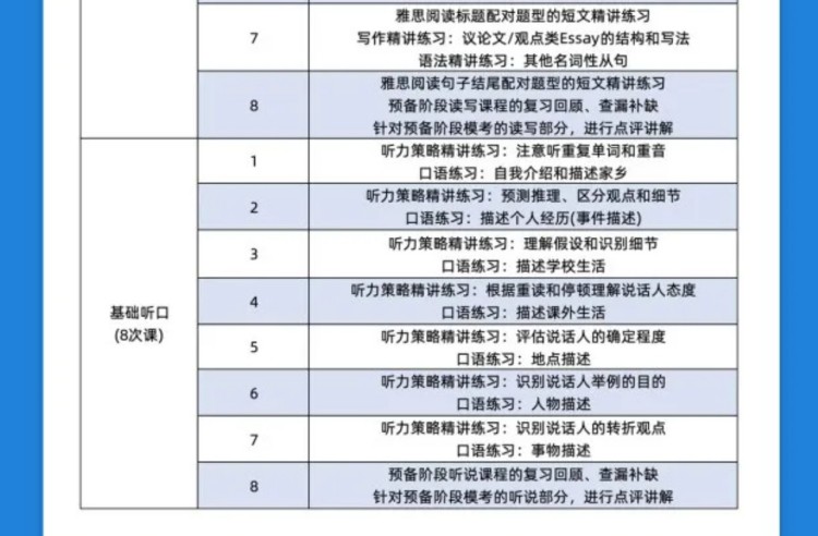 雅思辅导部分课程大纲介绍: