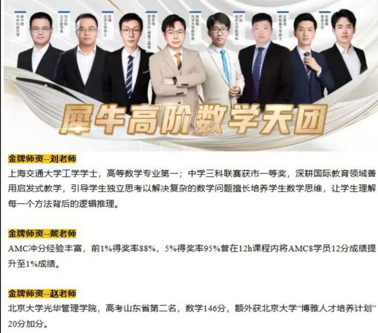 专注国际课程与竞赛辅导,师资多为海归或竞赛获奖出身,教学风格灵活,注重个性化辅导。在AMC10/12培训方面,犀牛教育拥有完整的课程体系与模拟测试系统。