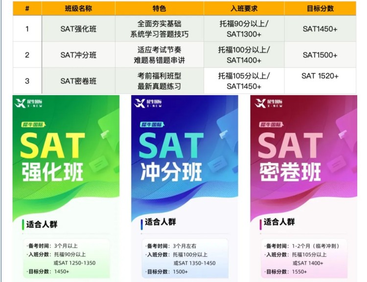 班型设置:SAT强化班、SAT冲分班、SAT密卷班