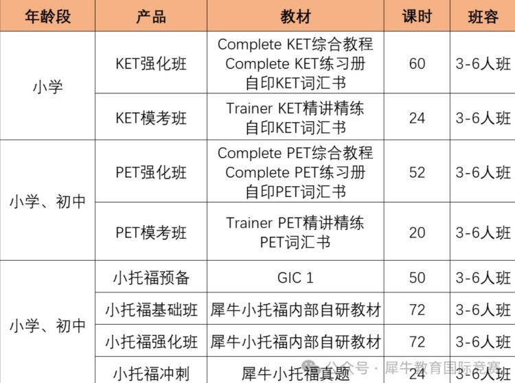 KET/PET培训班班型:KET强化班、KET模考班、PET强化班、PET模考班