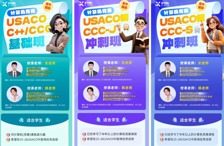 USACO竞赛中文名称为“美国计算机奥林匹克竞赛”,是面相全球中学生的计算机类竞赛之一,竞赛含金量较高,得到全球各大顶尖学府的认可。根据USACO计算机竞赛规则来看,USACO分为青铜、白银、黄金、白金4个级别,初次参赛者先考青铜,然后逐步晋级,最终拿到白金等级奖项。